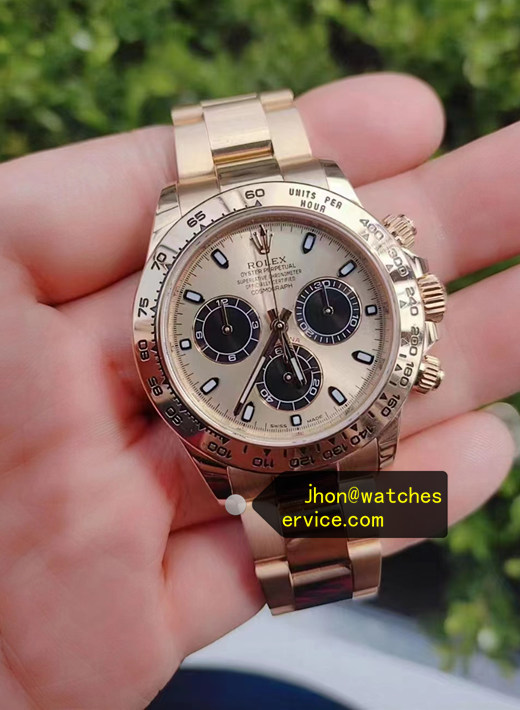 Description: Champagne Black Dial Daytona 116508 rolex super clone replica watch,Real Rose Gold made.