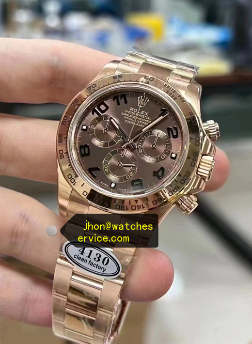 Description: Chocolate Arabic Dial Daytona 116505 rolex super clone replica watch, Rose Gold made, Pink Oyster bracelet.