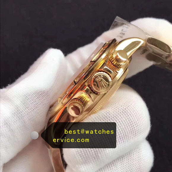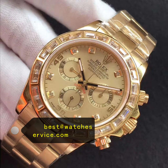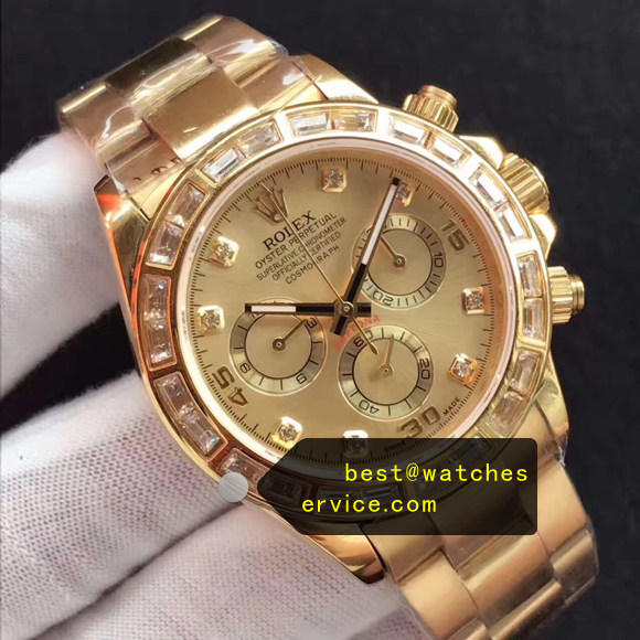 Description: Daytona m116508-0006 Square Diamonds Bezel rolex super clone replica watch, 18k-Gold made, Square Diamonds Bezel.