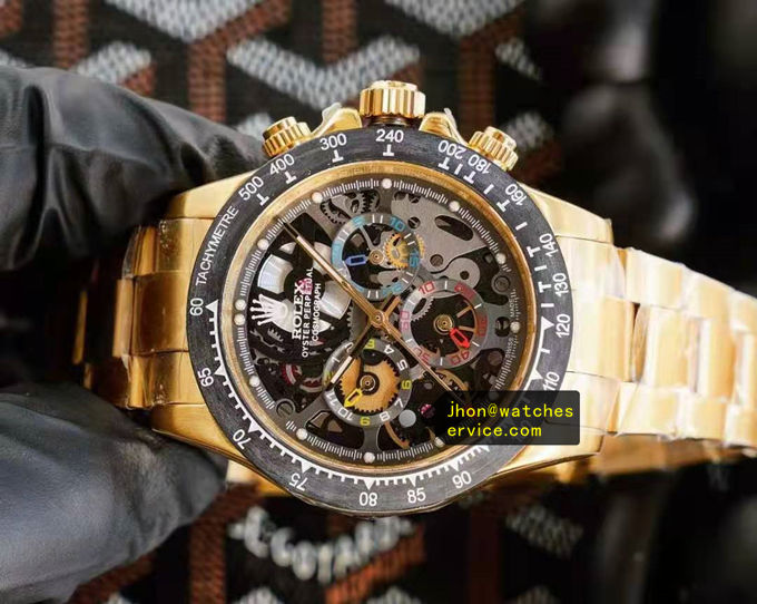 Description: Gold Daytona Montoya Carbon Fiber rolex super clone replica watch, Carbon Fiber Bezel, Steel bracelet.
