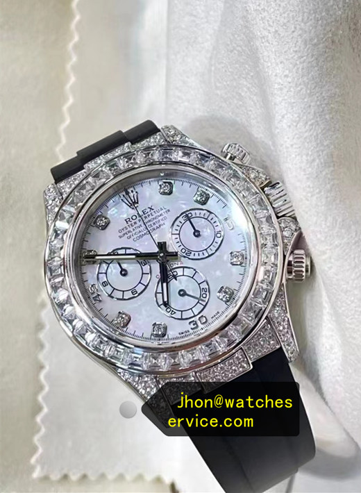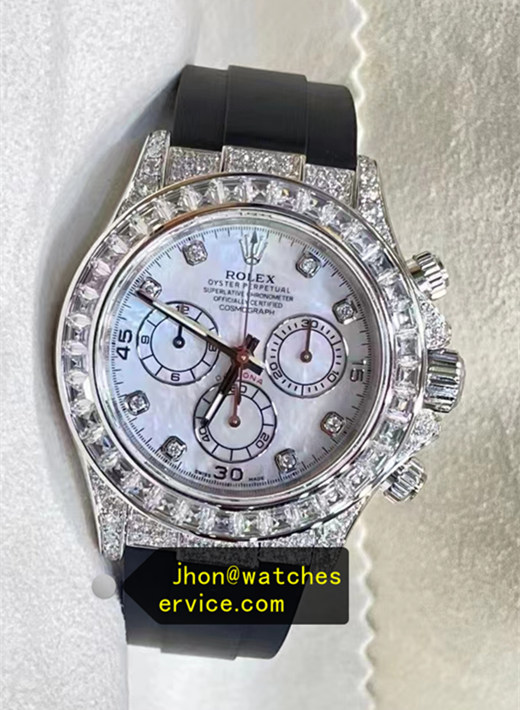 Description: Ice Blue Dial Diamonds Daytona Oysterflex rolex super clone replica watch, Oysterflex black rubber bracelet.